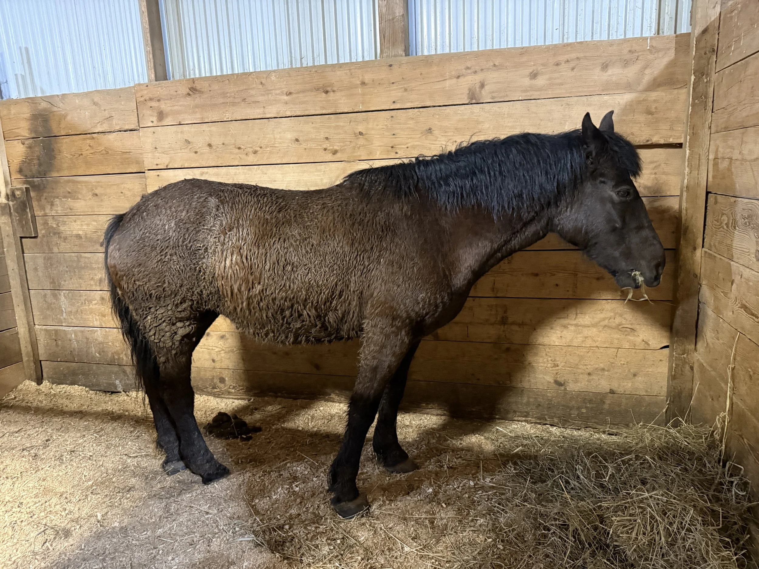 Wild Run Hanover, Runner, was a racehorse with winnings of nearly $75,000. With his racing career over, he worked for the Amish and by no fault of his own, ended up at a Kill Pen in Pennsylvania. When he arrived at Sunshine, he was scared and broken. Today, Runner thrives and is beautiful, funny, and sassy. He was one of the lucky ones. There are so many ‘Runners’ waiting to be saved.