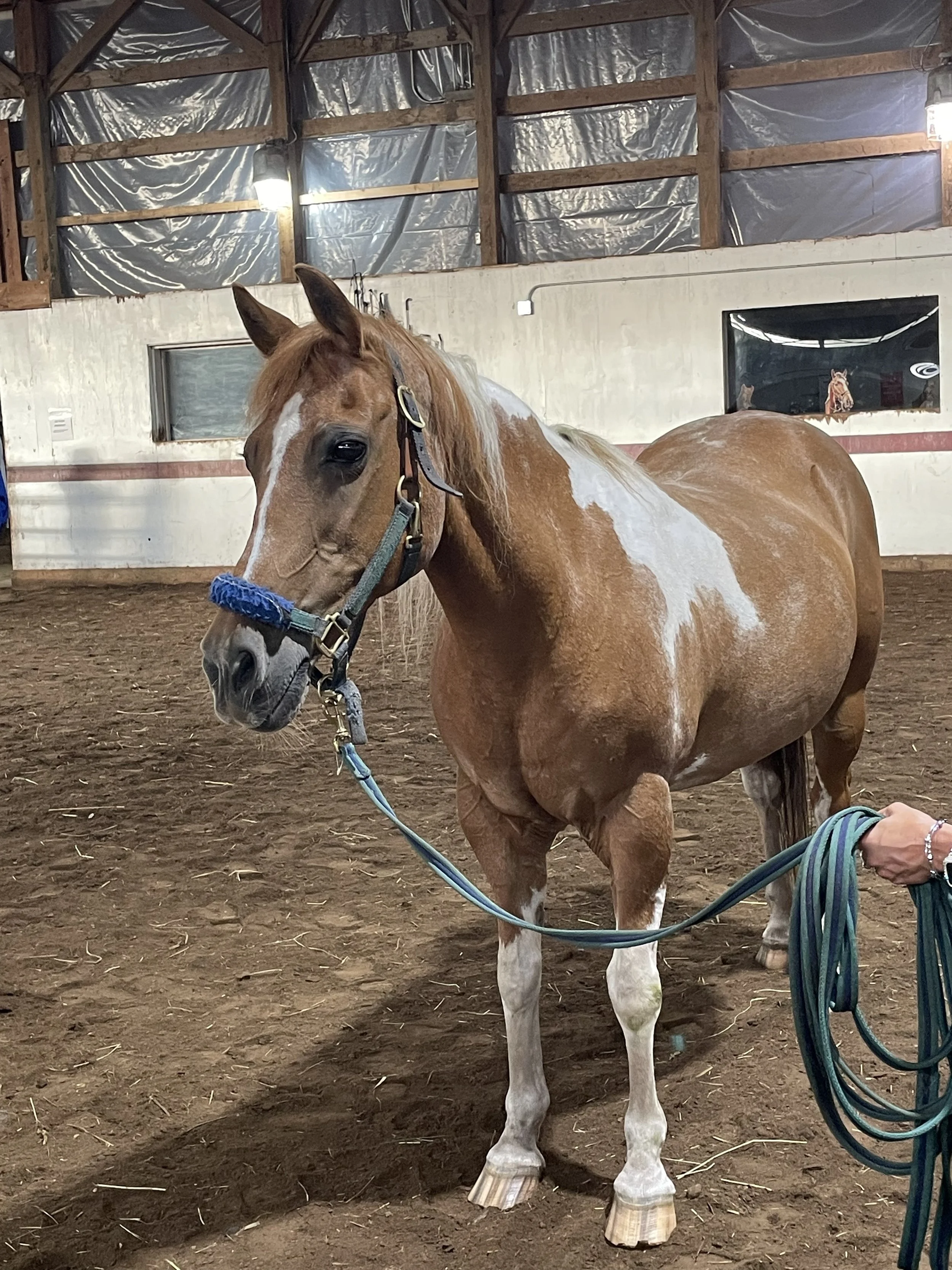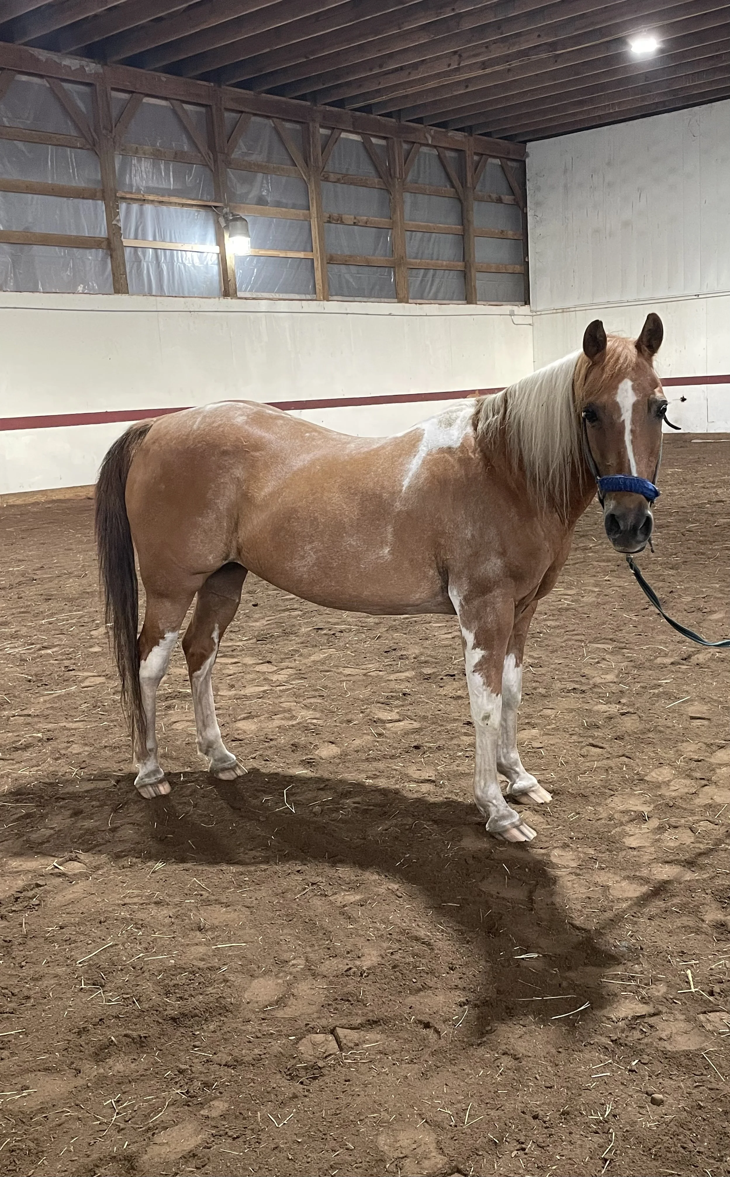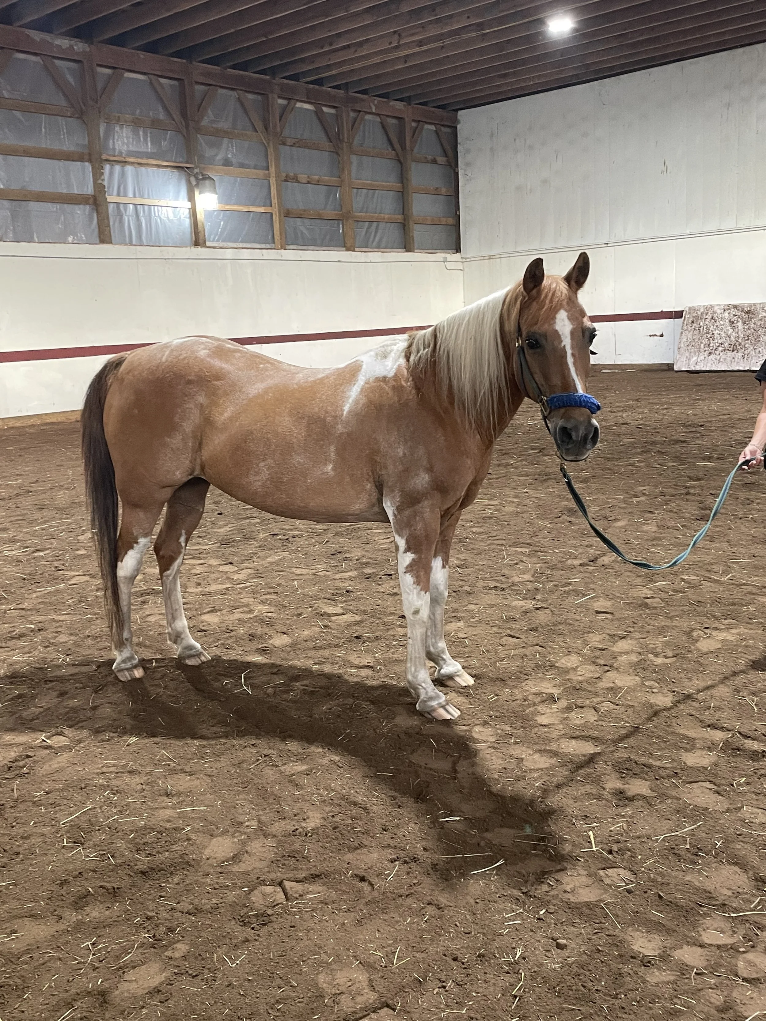 Description: Callie is a gentle, easygoing, and dependable mare who takes everything in stride. She is comfortable at the walk, trot, and canter, both under saddle and on the lunge line. Callie has experience in both English and Western riding and is happy in either discipline. With her kind nature and steady demeanor, she has all the makings of becoming a child’s best friend and trusted partner.